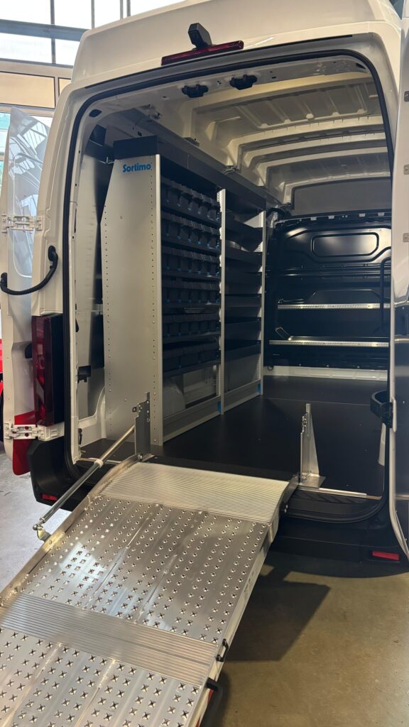 Der Ausbau durch Sortimo Schweiz AG umfasst u.a. eine Faltrampe am Heck.
