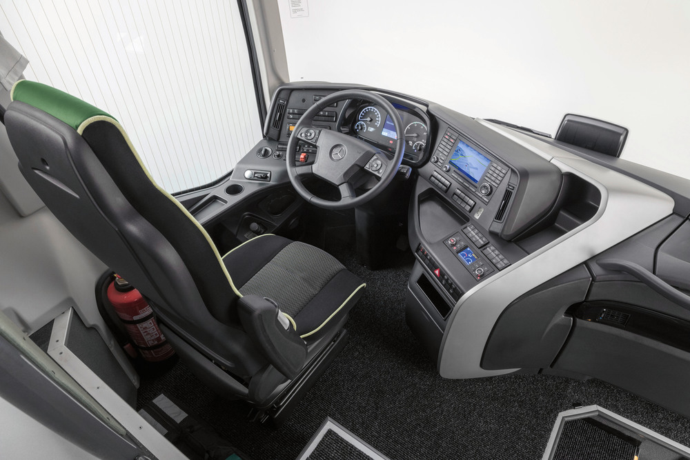 In unserer Oktober-Ausgabe haben wir den Spanier zusammen mit seinen Konkurrenten im Detail vorgestellt. So beschränken wir uns auf eine Kurzbeschreibung des «Coach of the Year 2018». Optisch sauber gestaltet und modern kommt der Fahrer-Arbeitsplatz daher. Das Display mit zwei grossen Rundinstrumenten – links Geschwindigkeit, rechts Drehzahlen – und zwei kleinen Anzeigen für Tank und Wassertemperatur ist gut einsehbar. Alle anderen Anzeigen können auf Wunsch über das Multifunktionslenkrad aufgerufen werden oder werden bei Bedarf (Störungen) selbstständig angezeigt. Alle Schalter befinden sich links unter dem Fahrerseitenfenster. Dabei sind es keine Kipp-, sondern nur Tippschalter, was für Gelegenheitsfahrer bei der Bedienung das Abwenden des Blicks von der Strasse nötig macht.