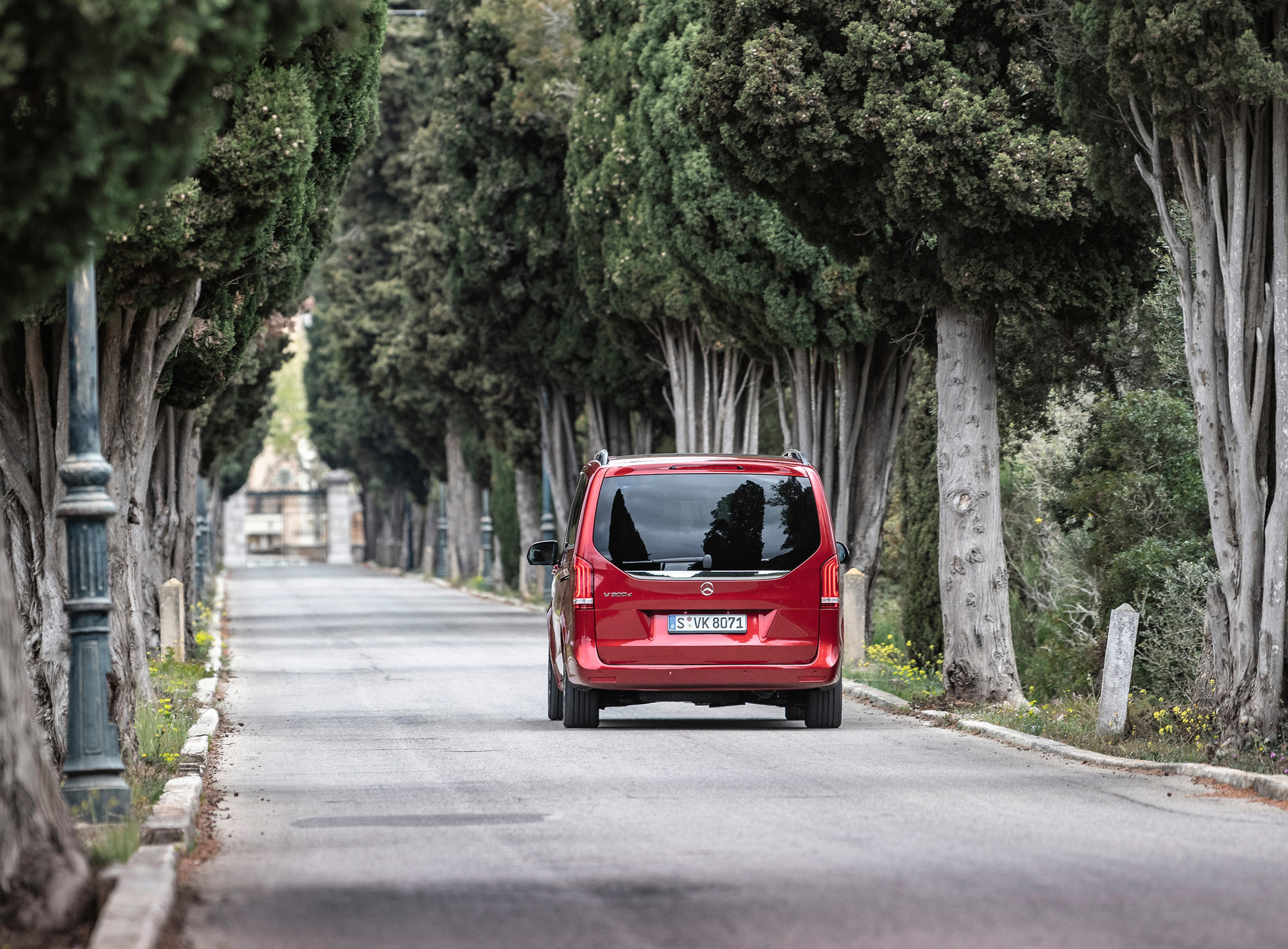 Wie bisher, stehen drei Karosserie­varianten zur Wahl. Der «Kompakte» ist 4,90 m lang, der «Lange» misst 5,24 m und der «Extralange» misst 5,37 m. Lediglich beim Extralangen wird der Radstand von 3,20 m auf 3,43 m gestreckt. Positiv: Sämtliche Versionen der V-Klasse bleiben unter zwei Metern Fahrzeughöhe, sodass dem Wagen jede reguläre Tiefgarage offensteht.