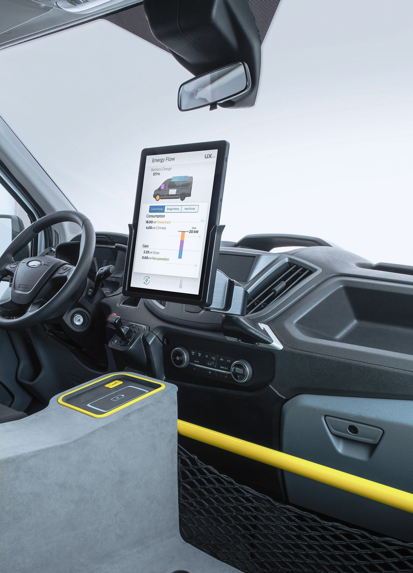 Ford erforscht mit dieser BEV-Studie (BEV = Battery Electric Vehicle) neue Lösungsansätze zur Optimierung der Energie-Effizienz und zur Reichweiten-Maximierung elektrifizierter Fahrzeuge. Der Prototyp kann nach einer vierstündigen Ladezeit 150 km batterie-elektrisch zurücklegen und baut auf dem gleichen Antriebsstrang auf, der auch im StreetScooter WORK XL zum Einsatz kommt – ergänzt um folgende energiesparende und rekuperierende Aspekte:
