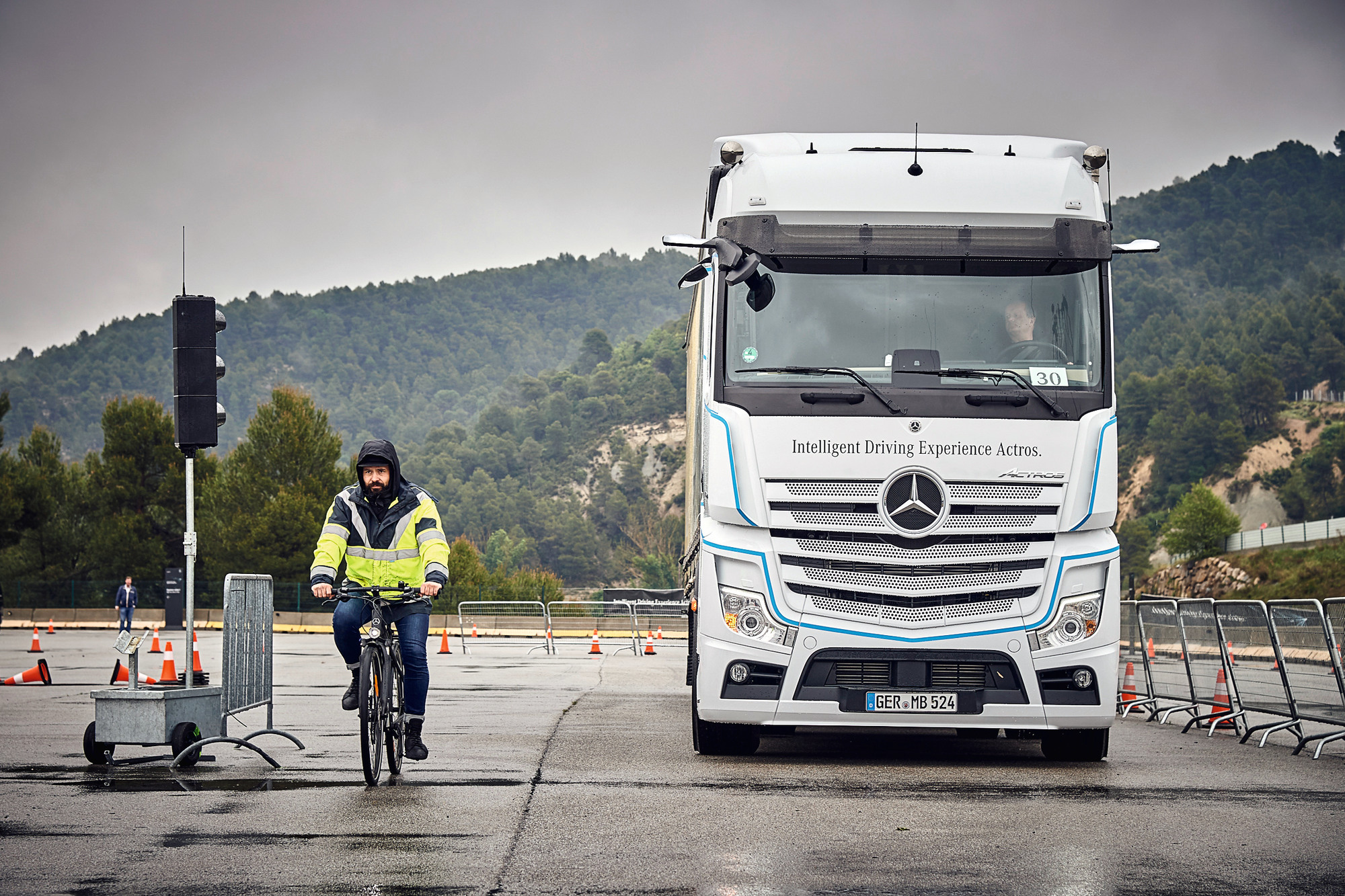 Der seit 2016 erhältliche Abbiegeassistent, der durch speziellen, seitlich angebrachten Radar Fussgänger, Velofahrer und selbst Ampelmasten im Abbiegebereich rechts erkennt, projiziert neu seine optische Warnung in den Bildschirm der rechten MirrorCam, also genau dort, wo der Chauffeur beim Abbiegen den Kontrollblick hinwirft. Reagiert der Chauffeur nicht auf die Warnung, bremst der LKW wie bisher notfallmässig. Anlässlich der Fahrvorstellung des Actros versprach Sefan Buchner, Leiter von Mercedes-Benz Trucks, dass in Kürze mit weiteren Systemen gerechnet werden darf. Über deren Aufgaben lässt Buchner sein Publikum jedoch noch im Unklaren.