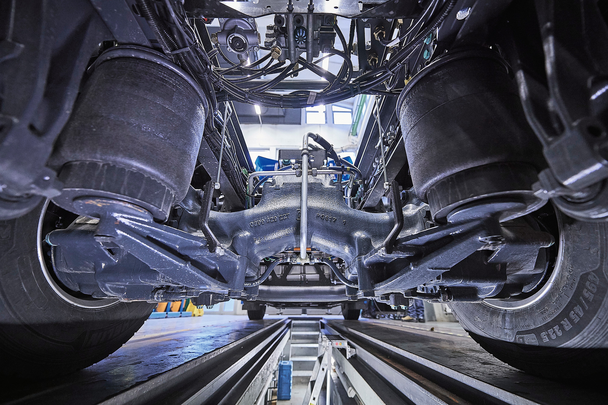 Wie erwähnt, wurde eng mit der Bussparte von Daimler zusammengearbeitet. So stammt die Batterie gemäss Martin Zeilinger 1:1 aus dem Citaro. Der Leiter des Advanced Engineering bei Daimler Trucks erläutert auch die Anpassungen bei der Antriebsachse. Diese stammt ebenfalls aus dem Citaro und wird von ZF geliefert. Allerdings musste der Achsrahmen geändert werden, da im Bus ein möglichst flacher Boden im Passagierraum verlangt wird, im LKW hingegen eine möglichst gute Bodenfreiheit. An der Antriebsachse sind zwei Motoren in Radnähe angebracht.