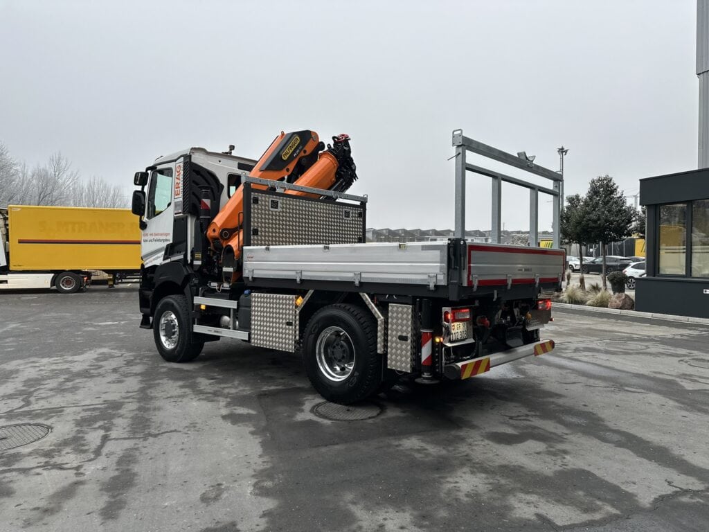 Entsprechend hoch sind die Anforderungen an Zuverlässigkeit, Geländegängigkeit und Nutzlast. Der Renault Trucks K 460 mit Allradantrieb (4×4) ist für genau diese Herausforderungen konzipiert. Angetrieben von einem 11-Liter-Dieselmotor mit 460 PS und 2200 Nm Drehmoment sowie ausgestattet mit dem automatisierten Optidriver Xtended-Getriebe, bietet das Fahrzeug optimale Kontrolle auch in steilem und unwegsamem Gelände. Das Gesamtzuggewicht von bis zu 60 Tonnen ermöglicht den flexiblen Einsatz mit Anhänger – ein entscheidender Vorteil im täglichen Einsatz der Erag Netzbau AG.