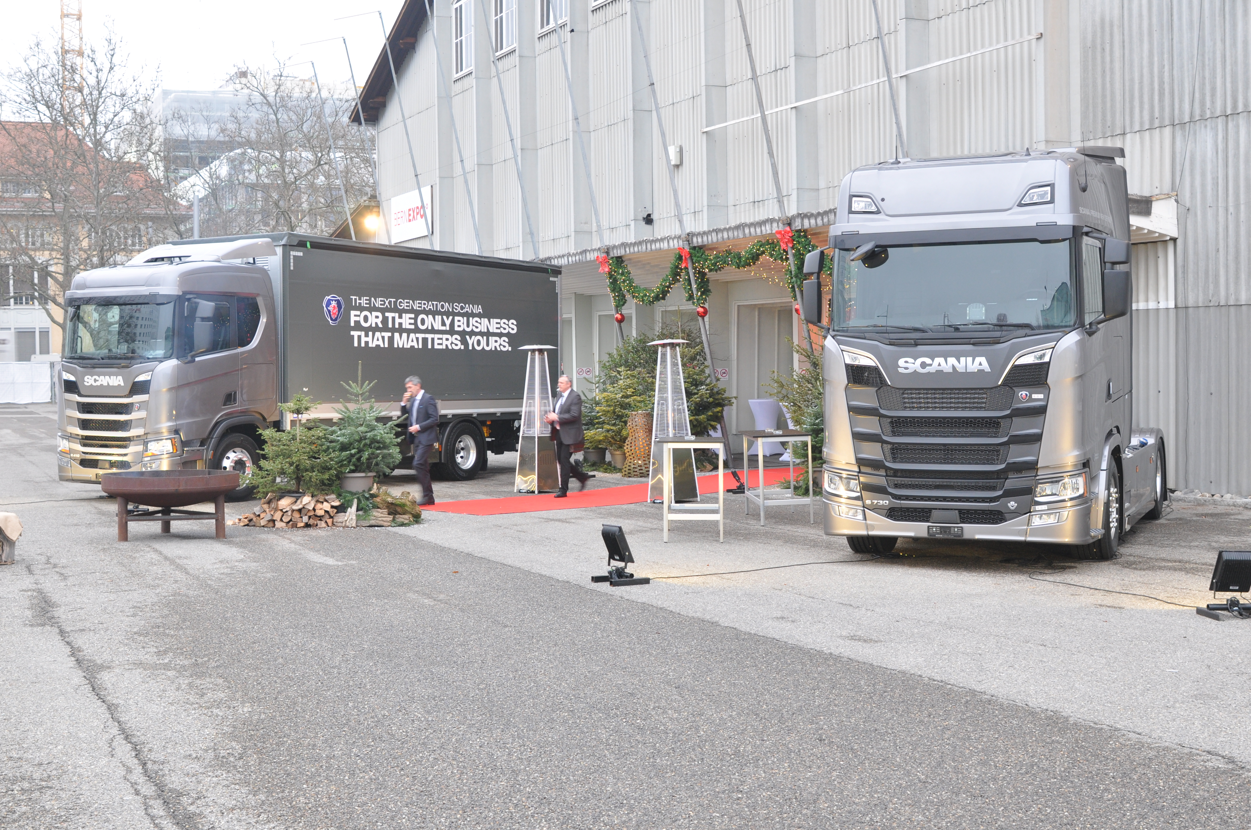 SCANIA NEXT GENERATION Zur ungewöhnlich gross angelegten Fahrzeugübergabe lud Scania kurz vor Weihnachten in Bern. Alle anwesenden Kunden hatten ihren Truck buchstäblich blind bestellt.