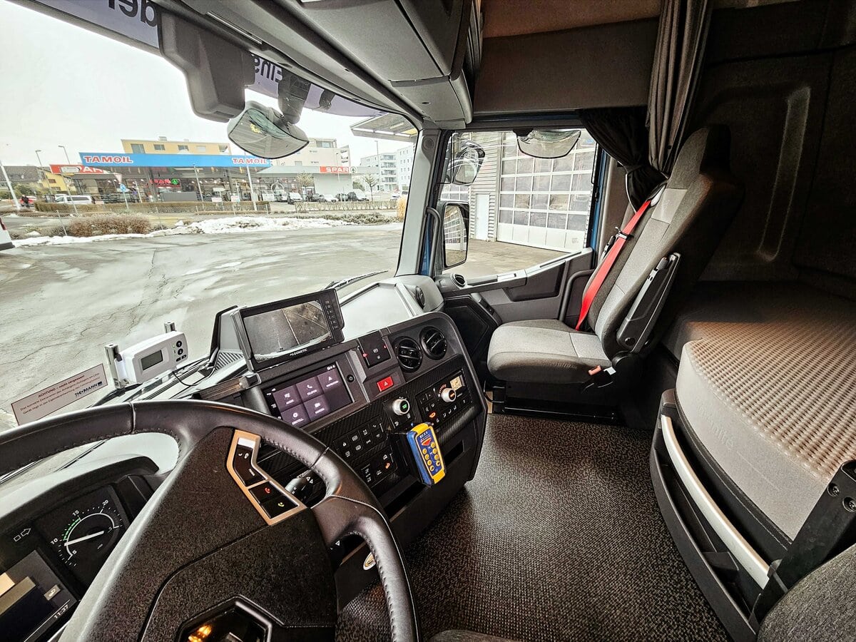 Ein technisches Highlight des Fahrzeugs ist der höhenverstellbare Aufbau von Birrer Fahrzeugbau. Diese Lösung bietet der Pelltec GmbH maximale Flexibilität im Arbeitsalltag: Dank der variablen Aufbauhöhe ist die Zufahrt zu niedrigen Stallungen problemlos möglich, während gleichzeitig der Transport von besonders hohen Einstreu-Paletten ermöglicht wird. Das Gesamtzuggewicht von 40 Tonnen stellt sicher, dass auch grosse Liefermengen wirtschaftlich transportiert werden können. Diese Variabilität ist entscheidend, da das Unternehmen seine Kundschaft oft unter sehr unterschiedlichen infrastrukturellen Bedingungen beliefern muss. Die Investition in dieses massgeschneiderte Konzept unterstreicht den Anspruch der Firma, als zuverlässiger und flexibler Partner im Einstreumarkt zu agieren.