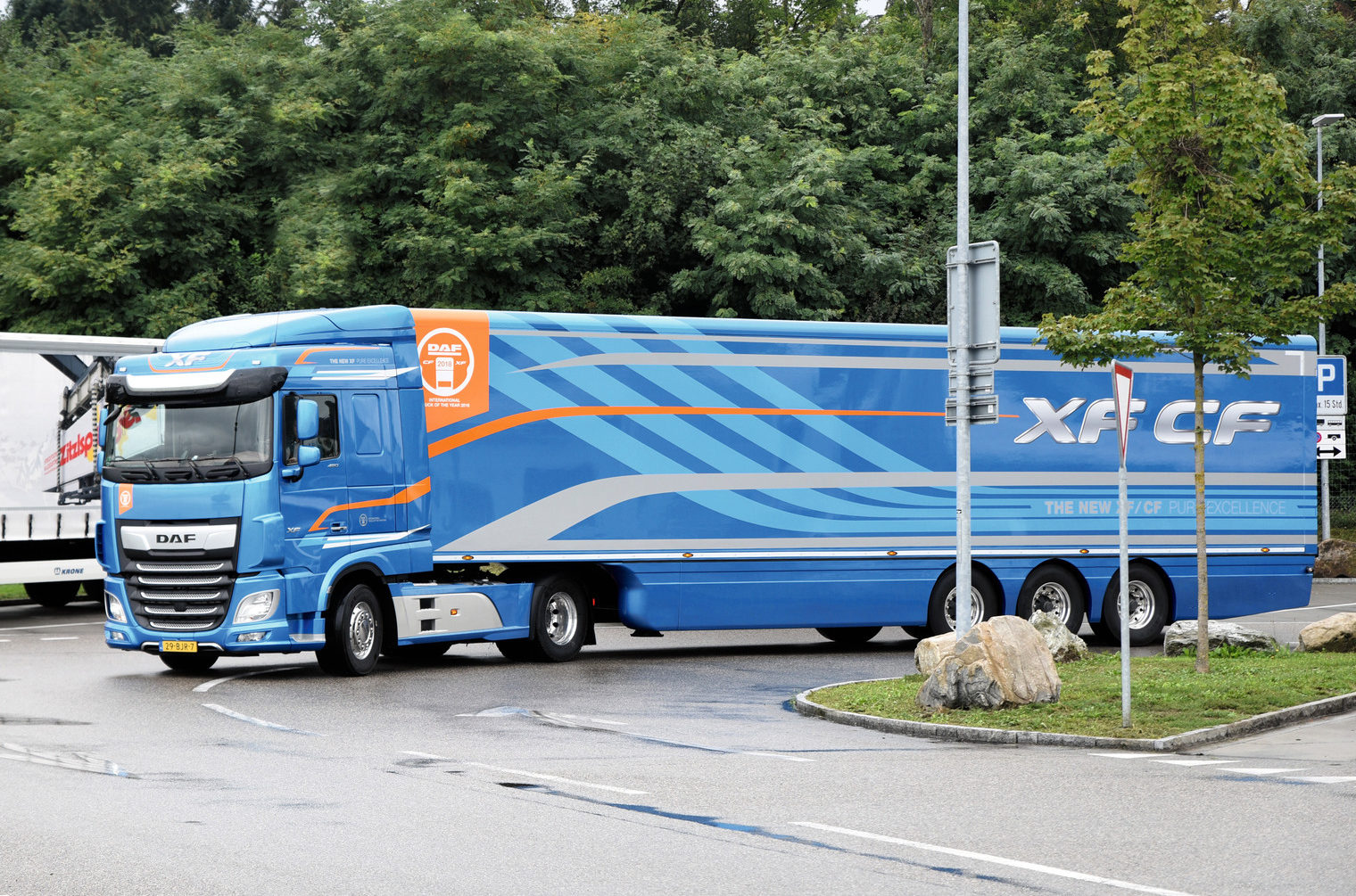 - Assistenzsysteme: MX-Motorbremse 360 kW, ZF-Intarder 500 kW, Predictive Cruise Control PCC mit Eco-Roll, DAF-Connect für Flottenmanagement, Spurhaltewarnung, Notbrems- und Auffahrassistenz/-warnung
