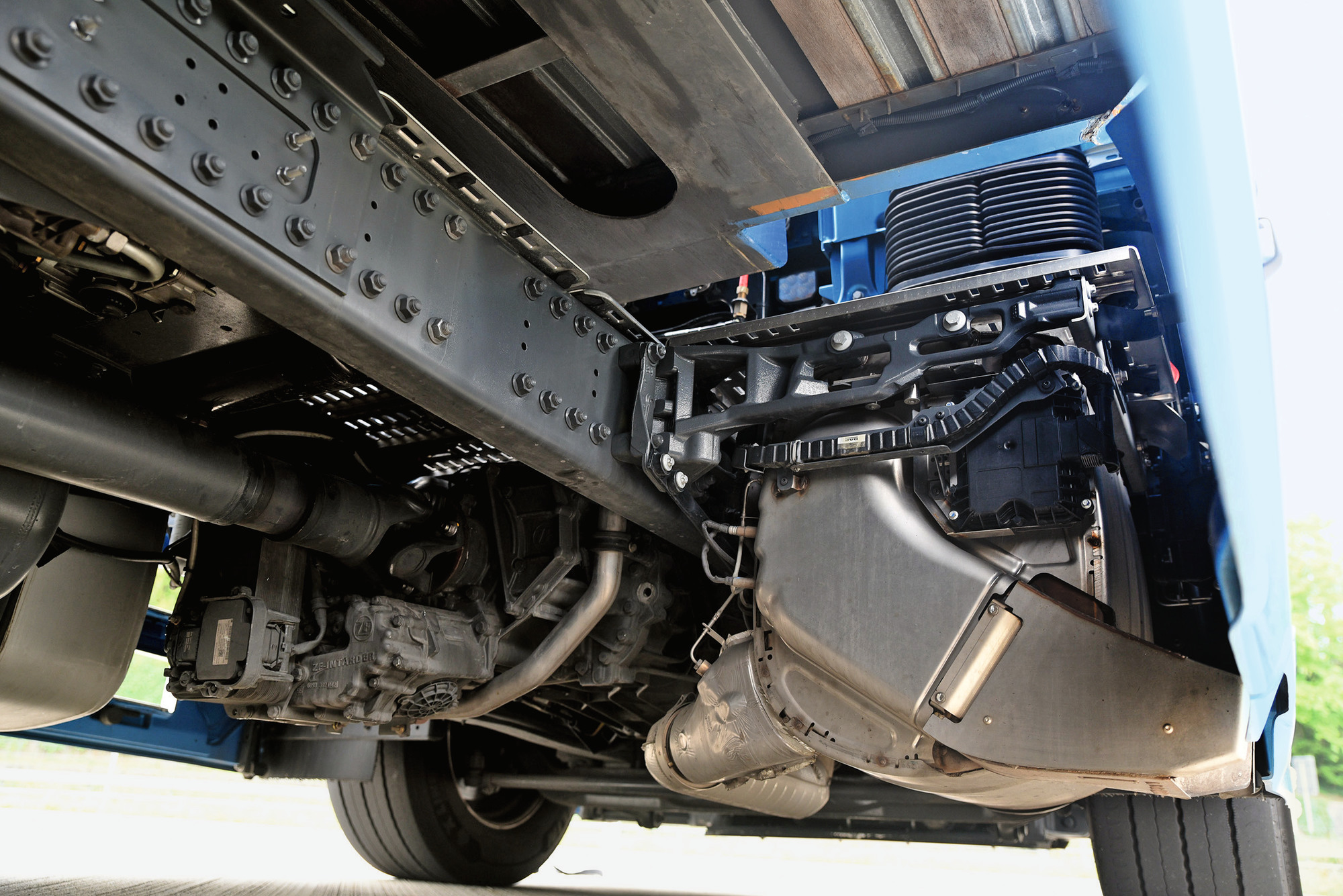 Eine weitere Neuerung ist die massiv reduzierte Baugrösse der Abgasnachbehandlung, die um 40 Prozent geschrumpft ist und zugleich rund 50 kg weniger auf die Waage bringt. Das schafft zusätzlichen Montageraum im Fahrgestell und erhöht die Nutzlast. Dank weiterer konstruktiver Massnahmen zur Gewichtsreduktion konnte die Nutzlast beim Zugfahrzeug mit 4×2-Konfiguration gesamthaft um mindestens 100 kg gesteigert werden. Dazu kommen diverse weitere Verbesserungen. Eine davon ist das anerkanntermassen effiziente Traxon-Getriebe von ZF, das mit schnelleren und weicheren Gangwechseln überzeugt. Andere Verbesserungen sind die neuen, reibungs- und verschleissärmeren Antriebsachsen, verbesserte Aerodynamik sowie neue Steuerungssoftware für Predictive Cruise Control PCC und diverse Elektronikeinheiten.