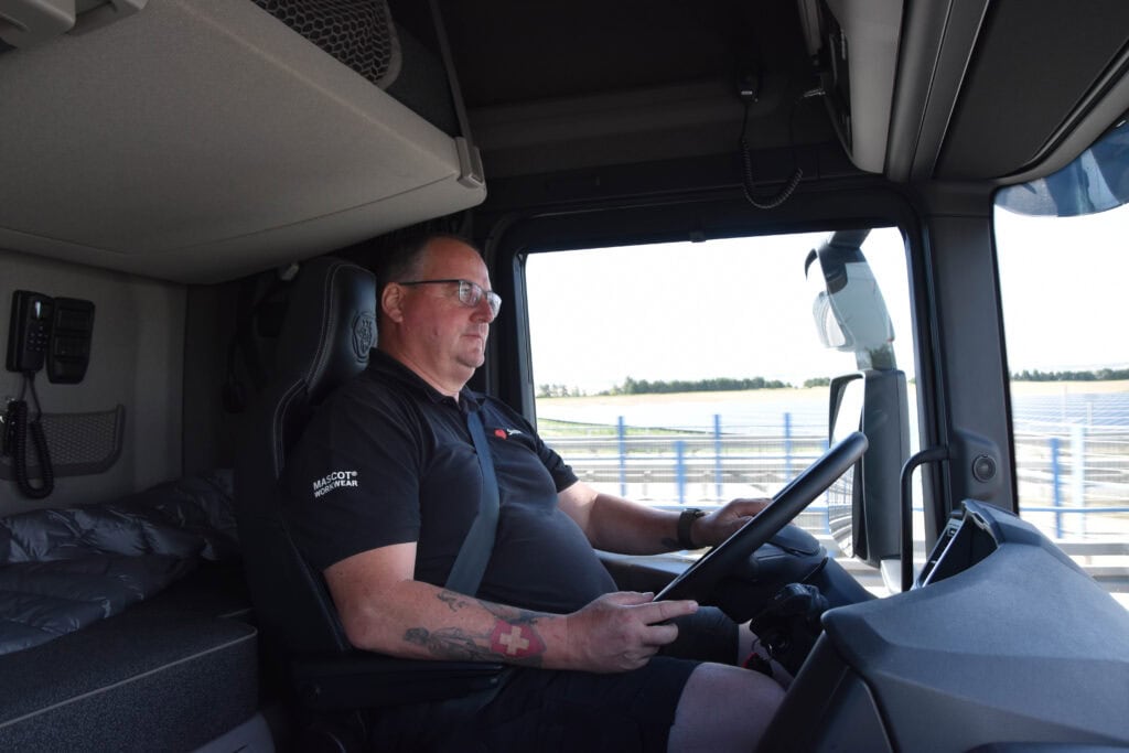 Der hohe Komfort des Scania hilft den Fahrern während der Fahrt . Rückspiegel und sämtliche aktive und passive Assistenzsysteme tragen jederzeit zu einer sicheren Fahrt bei, sind sich die Sauber-Chauffeure einig. Einzig das Navigationssystem scheint etwas veraltet zu sein und ist gelegentlich etwas verwirrend, sodass sich Mittner eine zusätzliche Navigation für das Mobiltelefon gekauft hat. «Für Irrfahrten bleibt uns keine Zeit», meint er augenzwinkernd. Dafür gefallen der effiziente Retarder, die vielen Staufächer, die Bedienung des Lichts in der Tür und die vielen weiteren Menüfunktionen. Casty ergänzt: «Beim Scania ist jeder Schalter am richtigen Ort platziert.»