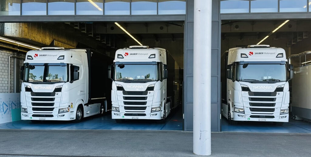 Für die sehr komplexe Logistik in der Formel 1 braucht es zuverlässige Mitarbeiter und Fahrzeuge. Eine Flotte modernster Scania liefert dabei die gesamte Infrastruktur auf alle europäischen Rennplätze. Die vier Race Trucks, welche die Rennwagen, das Werkstattmaterial und die Ersatzteile transportieren, werden dabei von Sauber Motorsport in Hinwil disponiert und auch eingesetzt.